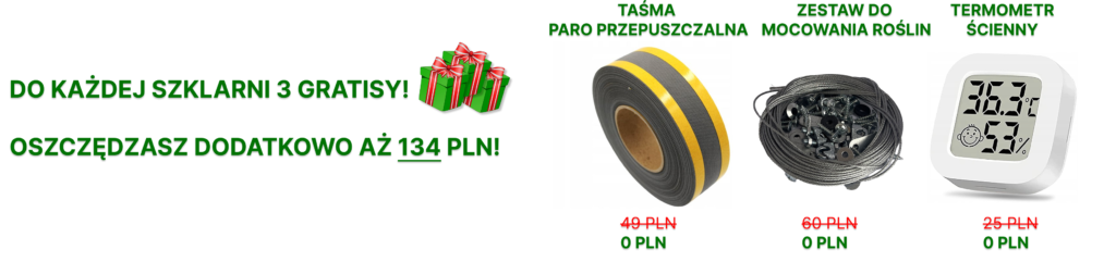 2 komplety drzwi, 2 okienka – do regulacji wilgotności i temperatury w szklarni, co stwarza niepowtarzalny mikroklimat dla roślin |